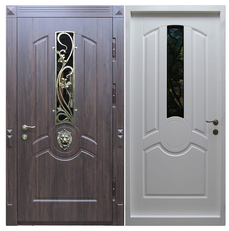 Железные двери МДФ с ковкой/стеклом по внешней отделке